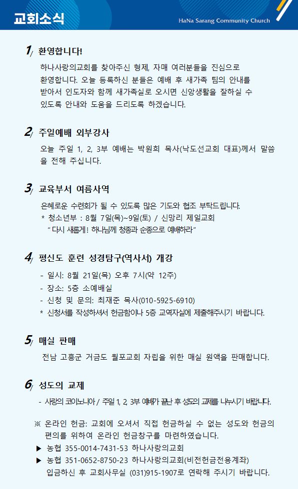 7월 20일 교회주보