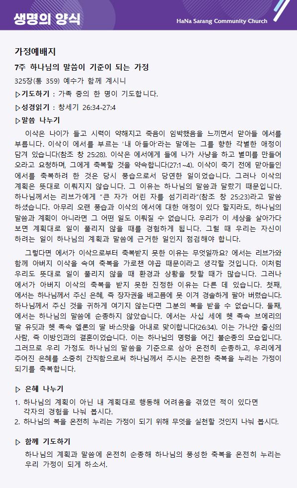 가정예배 나눔
