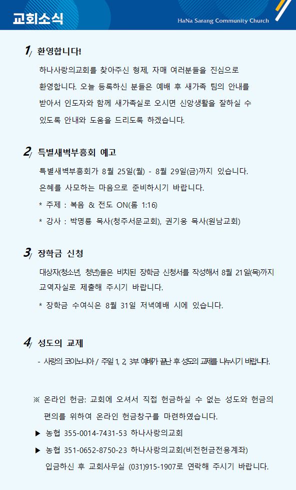 8월 3일 교회주보
