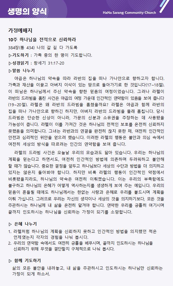 가정예배 나눔