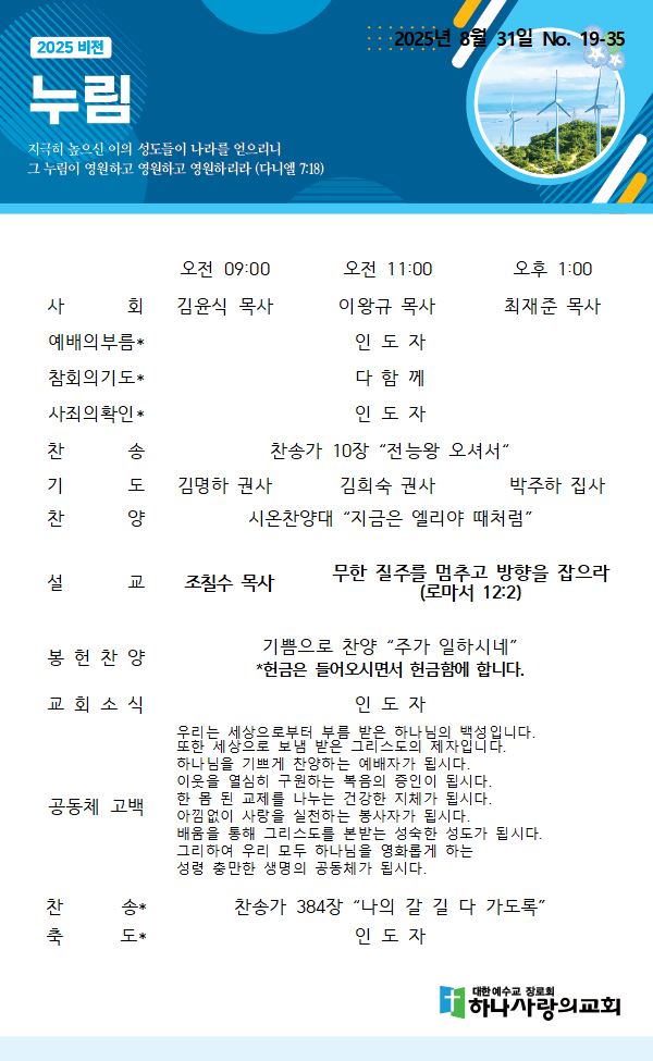 8월 31일 교회주보