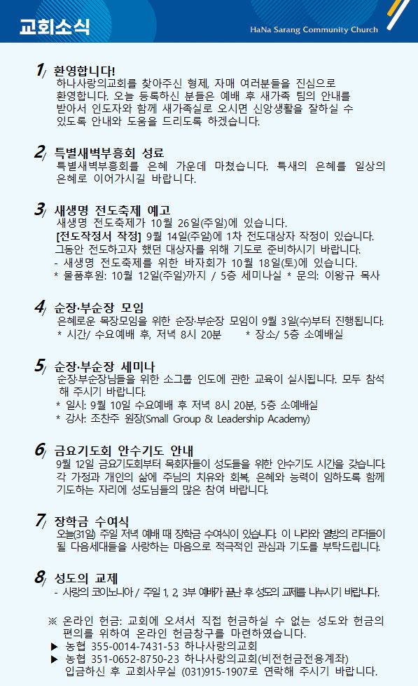 9월 7일 교회주보