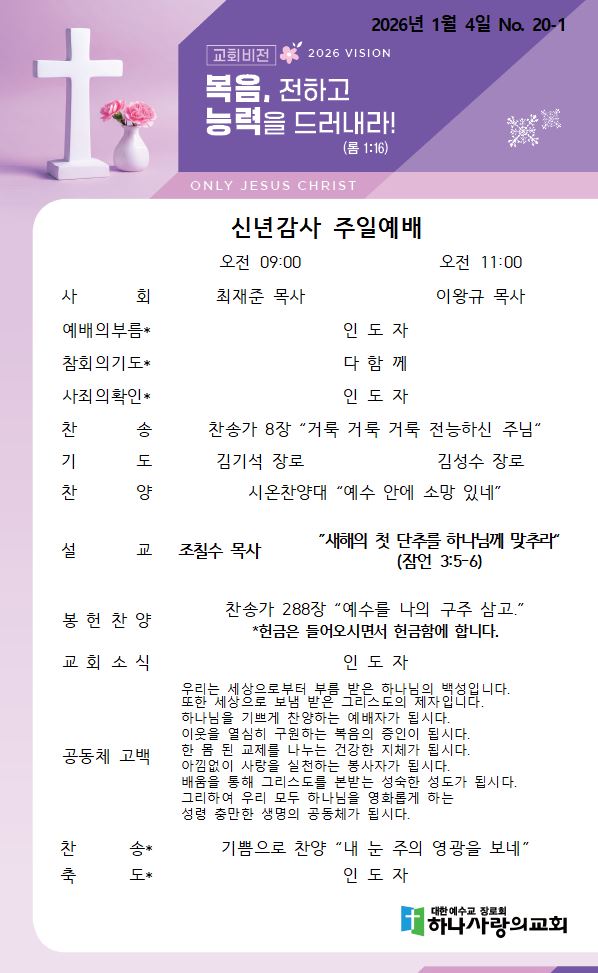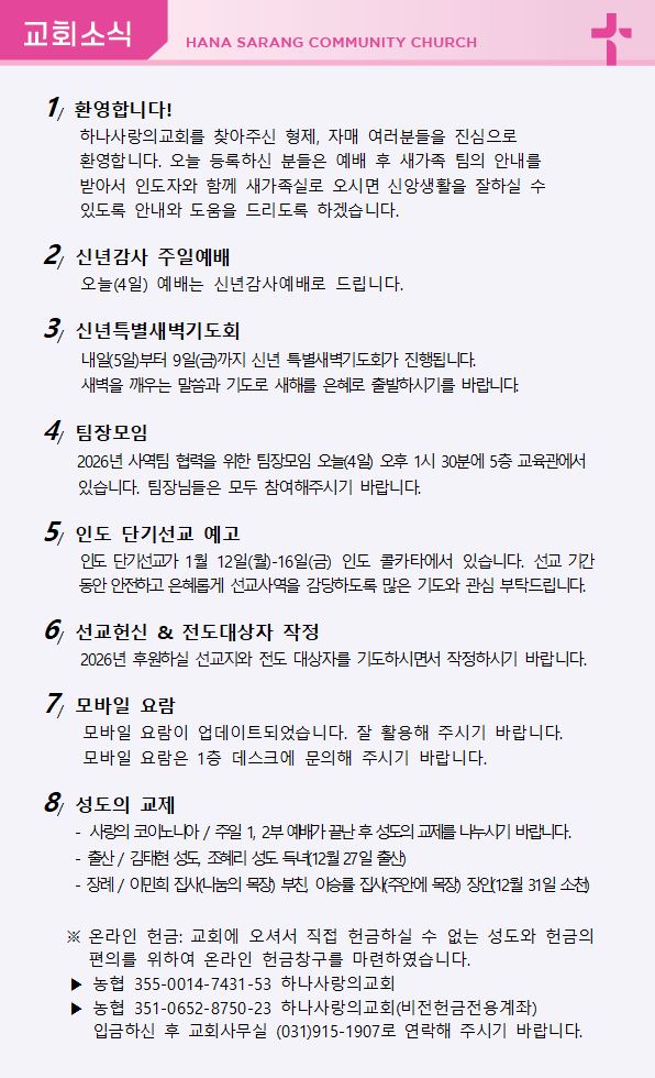 2026년 1월 4일 교회주보