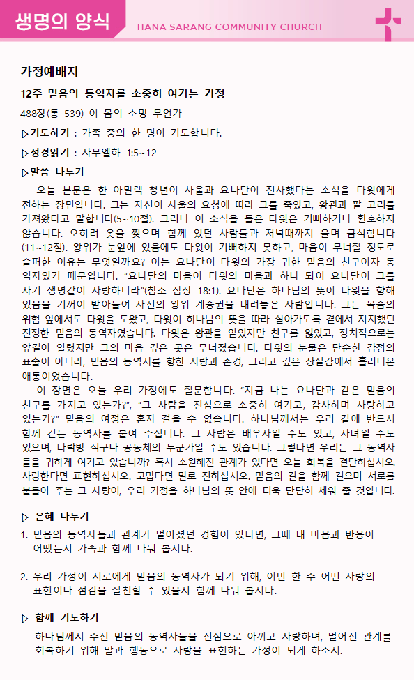 가정예배 나눔