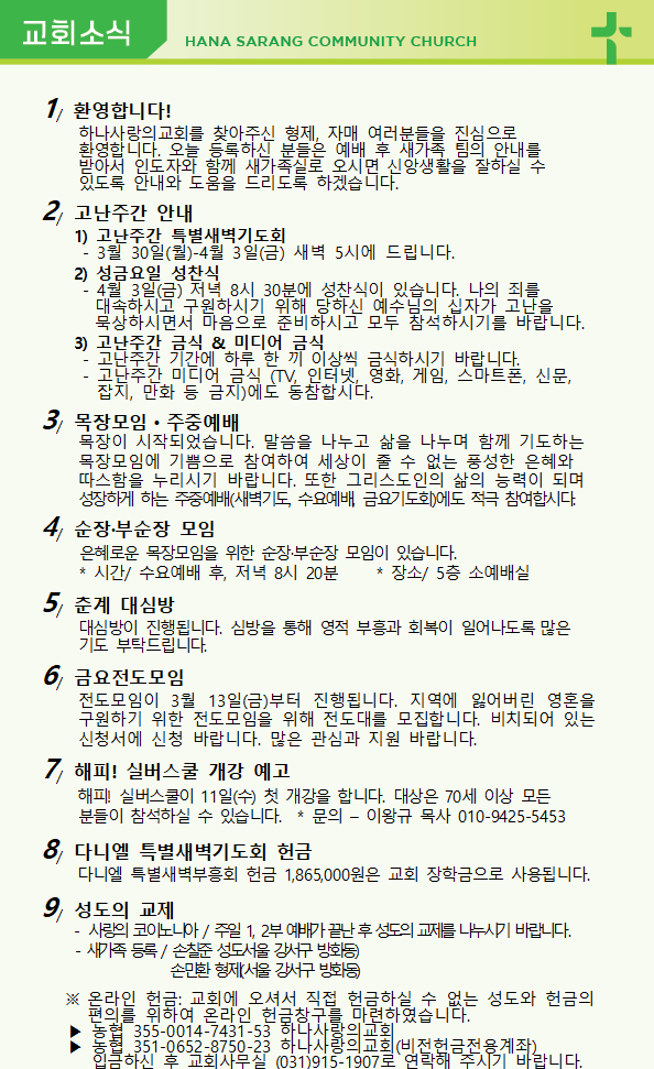 3월 15일 교회주보