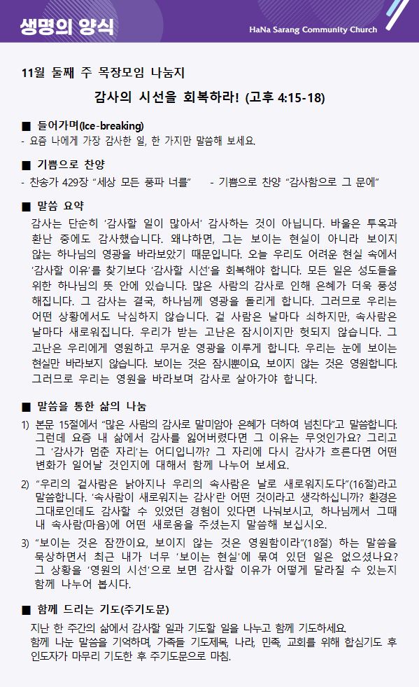 11월 9일 교회주보